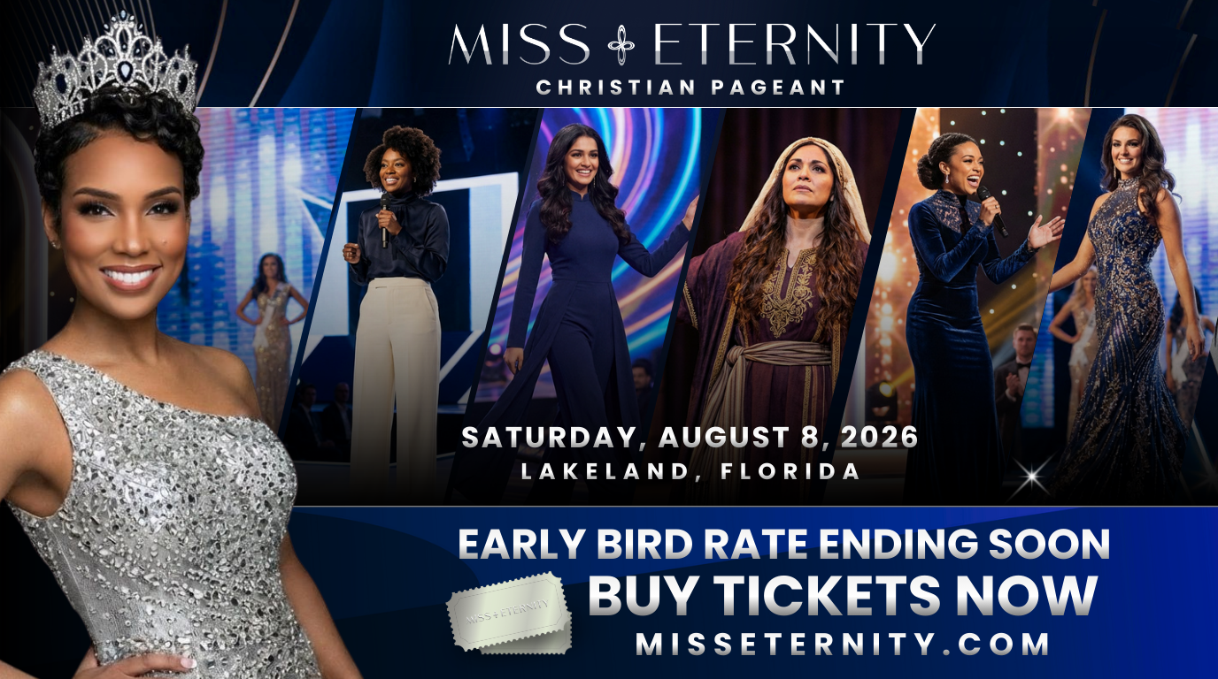 Miss Eternity is a faith-centered pageant celebrating women who have completed a year-long mentorship program rooted in biblical principles and godly confidence. Delegates from diverse backgrounds will showcase their growth, character, and God-given gifts in an evening honoring modest elegance and spiritual foundation.
